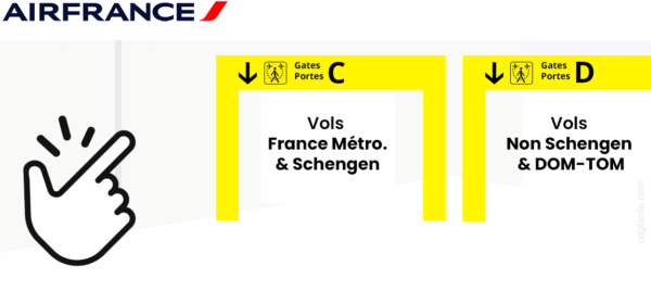 Votre parcours entre les Portes B, C, D, E, F, s’effectue à pied, en zone de transit.