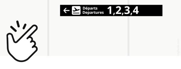 4. Dirigez-vous en zone ″Départs 1, 2, 3 ou 4″ pour l’enregistrement/dépose bagage de votre vol.